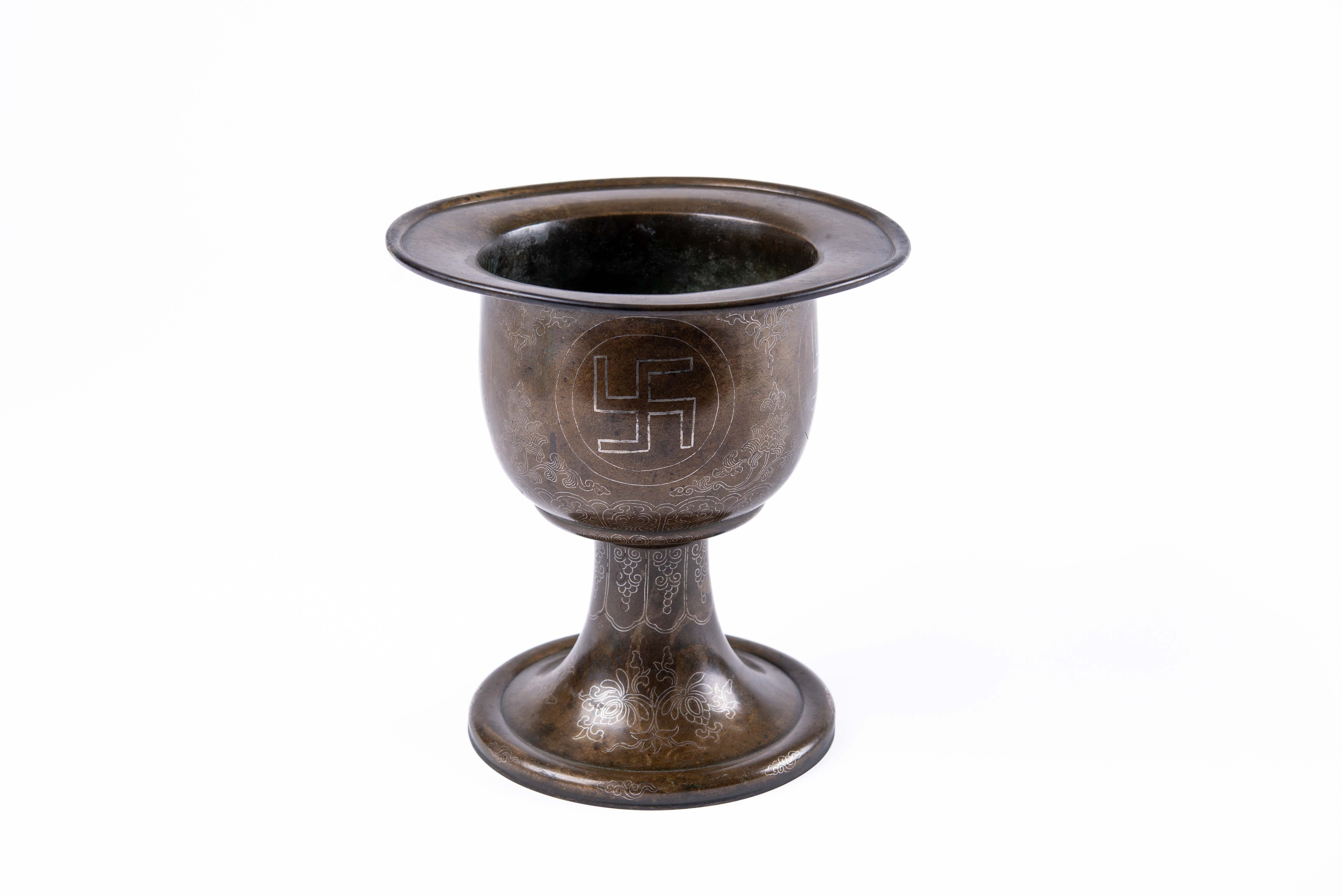 향완은 향을 사르는 데 사용하는 기물로 향로의 일종이다. 밥그릇 모양의 몸체에 나팔모양의 높은 대를 갖춘 형태의 것을 특별히 향완이라 한다. 고려시대에는 청동제에 은입사기법을 사용한 향로가 크게 유행하였는데 이 향완도 은입사기법을 사용하여 넓은 테두리의 윗면에 구름무늬를 넣었고 외면에는 대칭되는 네 곳에 원권을 돌리고 그 안에 굵게 卍자가 입사되어 있다. 작품의 양식상 고려말에 제작된 것으로 추정된다.