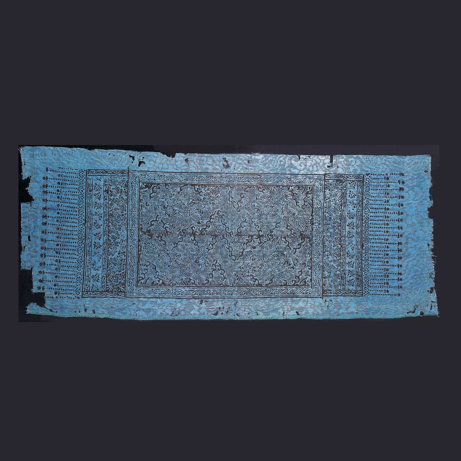 문수사 아미타불 복장유물-담청색천화봉황문인자황수파어용문라(淡靑色穿花鳳凰紋印雌黃水波魚龍紋羅)