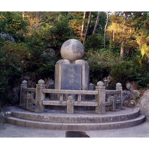 「예산 수덕사 만공탑」은 만공스님(1871~1946)의 업적을 기리기 위하여 1947년에 세운 석탑으로 전통적 승탑 형식을 탈피한 근대적 기념탑이다. 육각의 지대석 위에 원형의 괴임돌을 놓고, 그 위에 세 개의 기둥을 평면 Y字형태로 세운 후, 그 위에 구체(球體)를 올려놓았다. 기둥 세면의 빈 공간에 오석(烏石)으로 면석을 조성한 후, 정면에는 ‘만공탑’, 좌우측면에는 ‘世界一花’(세계일화), ‘百艸是佛母’를 비롯한 만공스님의 친필과 행장(行狀), 법훈(法訓) 등을 새겼다. 탑 주위에 두른 육각의 돌난간은 후대에 만공탑을 보호하기 위해 설치한 것이다.
