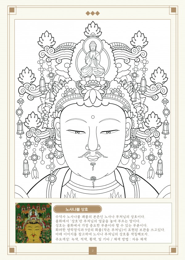 아래 이미지를 참고하여 노사나 부처님의 상호를 색칠해보자.